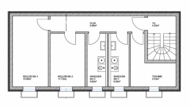 Das Untergeschoss gliedert sich auf in zwei große Kellerräume und zwei große Wasch-und Trockenräume sowie einen Technikraum.