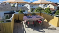 Das Highlight der Wohnung stellt der Wohn-/Ess-/Küchenbereich dar, von diesem Bereich aus gelangen Sie auf die ca. 19,78 m² große Dachterrasse und den nahtlos folgenden, ca. 7,06 m² großen Balkon. Von diesem Bereich aus können Sie einen wunderschönen und unverbaubaren Blick ins Grüne genießen, der ideale Platz zum Entspannen.